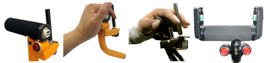 「T字」型のグリップが標準的ですが、ユーザー様のお体に合わせた設計やスイッチ配置にすることもできます。ご希望の方が是非ご相談下さい。